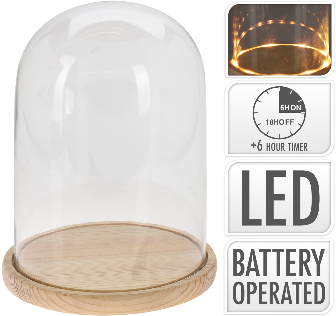 Campana In Vetro Con Base In Legno E Led