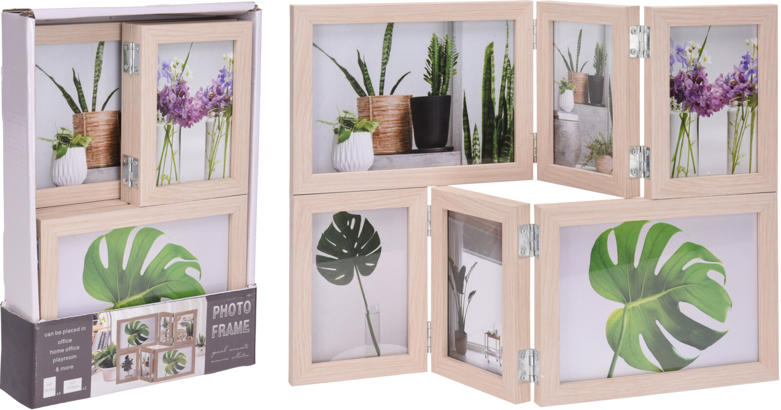 Porta Foto Legno 6 Posti Naturale