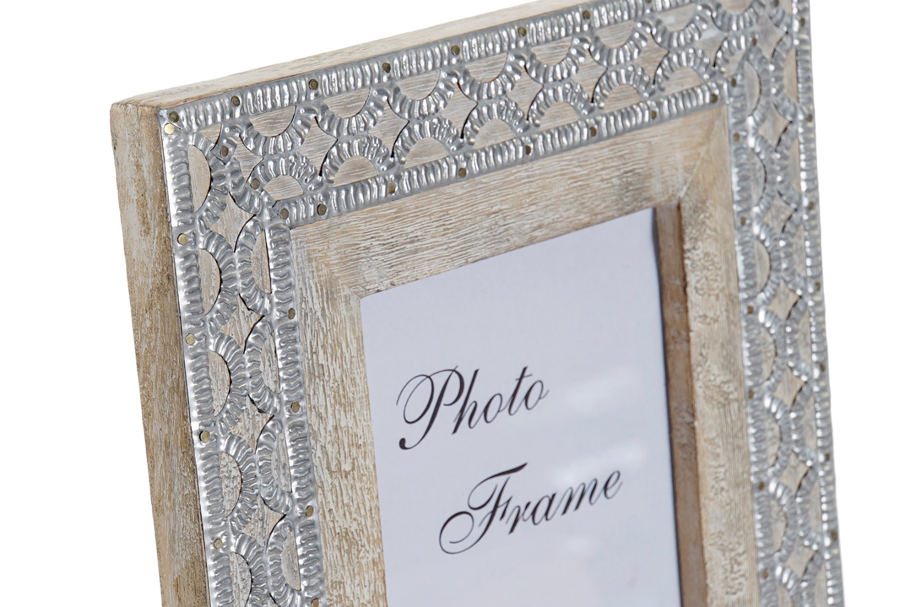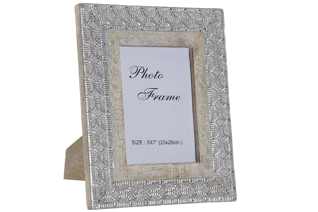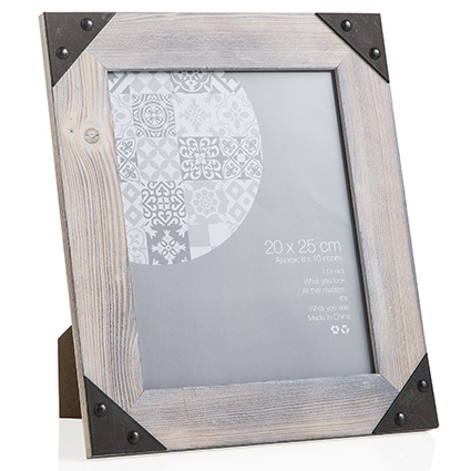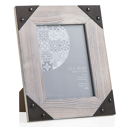 Portafoto Rett. Cornice Legno Angoli Metallo