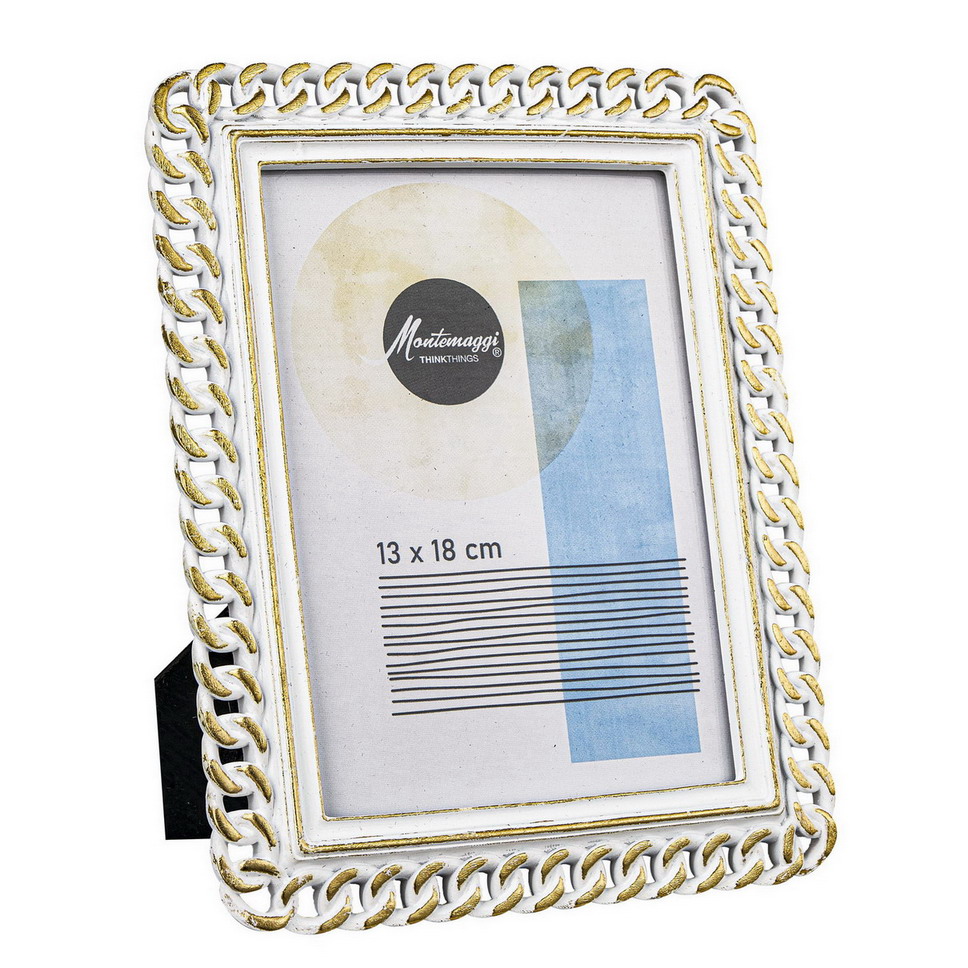 Portafoto Resina Catena Bianco Anticato Oro Foto 13×18