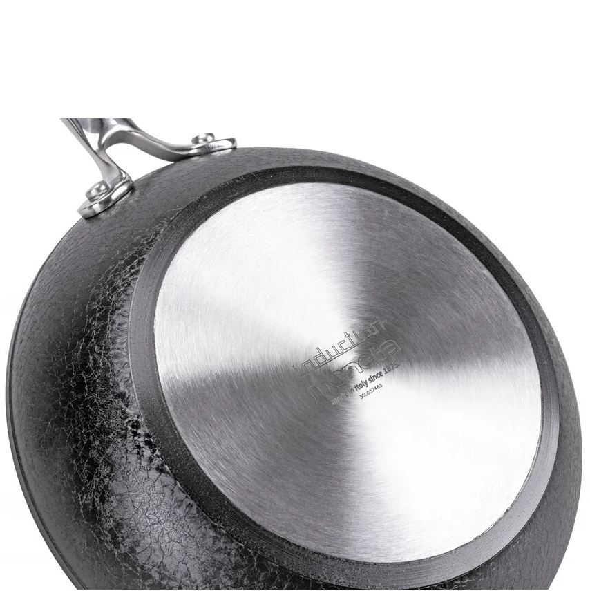 PADELLA ARMONIA FINEGRES MONETA§§ALLUMINIO FORGIATO: Per realizzare lo Strumento di Cottura viene utilizzato un Disco di Alluminio di alto spessore che viene poi Forgiato in fase di Formatura così da garantire una maggiore resistenza. Per la realizzazione vengono impiegate solo Leghe Adatte al Contatto con gli Alimenti. Le leghe autorizzate non contengono Arsenico, Piombo, Nichel o Cadmio.§§Finegres: innovativo rivestimento antiaderente naturale, privo di PFAS, PTFE, PFOA, NICHEL e metalli pesanti. E’ resistente ai graffi e all’uso intensivo. La sua alta efficienza energetica permette la trasmissione del calore più velocemente, facendo così risparmiare tempo ed energia. Oggi con una nuova formula, ancora più antiaderente.§§Manico Manici in acciaio Lucido Chiodato§§Fondo Full Induction”: Il fondo interamente in acciaio inox ne consente la massima efficienza su piani ad induzione, minimizzando i consumi. Per cotture uniformi e veloci senza sprechi!§§Fondo spazzolato§§Anni di Garanzia: 5§§Made in: Italy”