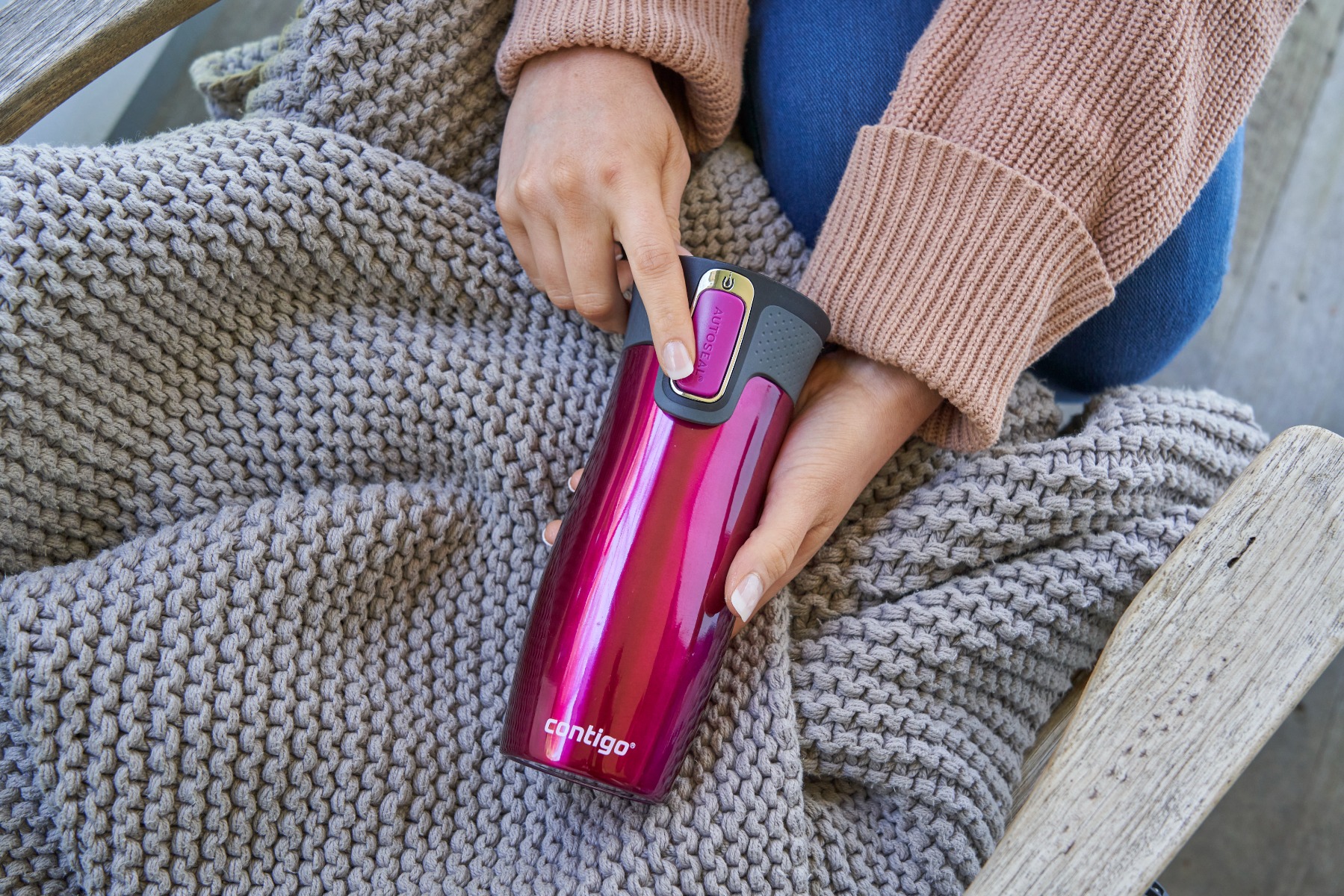 CONTIGO WEST LOOP 470 RASPBERRY Elegante boraccia termica per le tue bevande calde o fredde . Utilizzala con una sola mano , basta premere il pulsante per sosrseggiare e rilasciarlo per chiuderla automaticamente ed evitare fuoriuscite. Perfetta per accompagnarti in tutti i tuoi spostamenti .